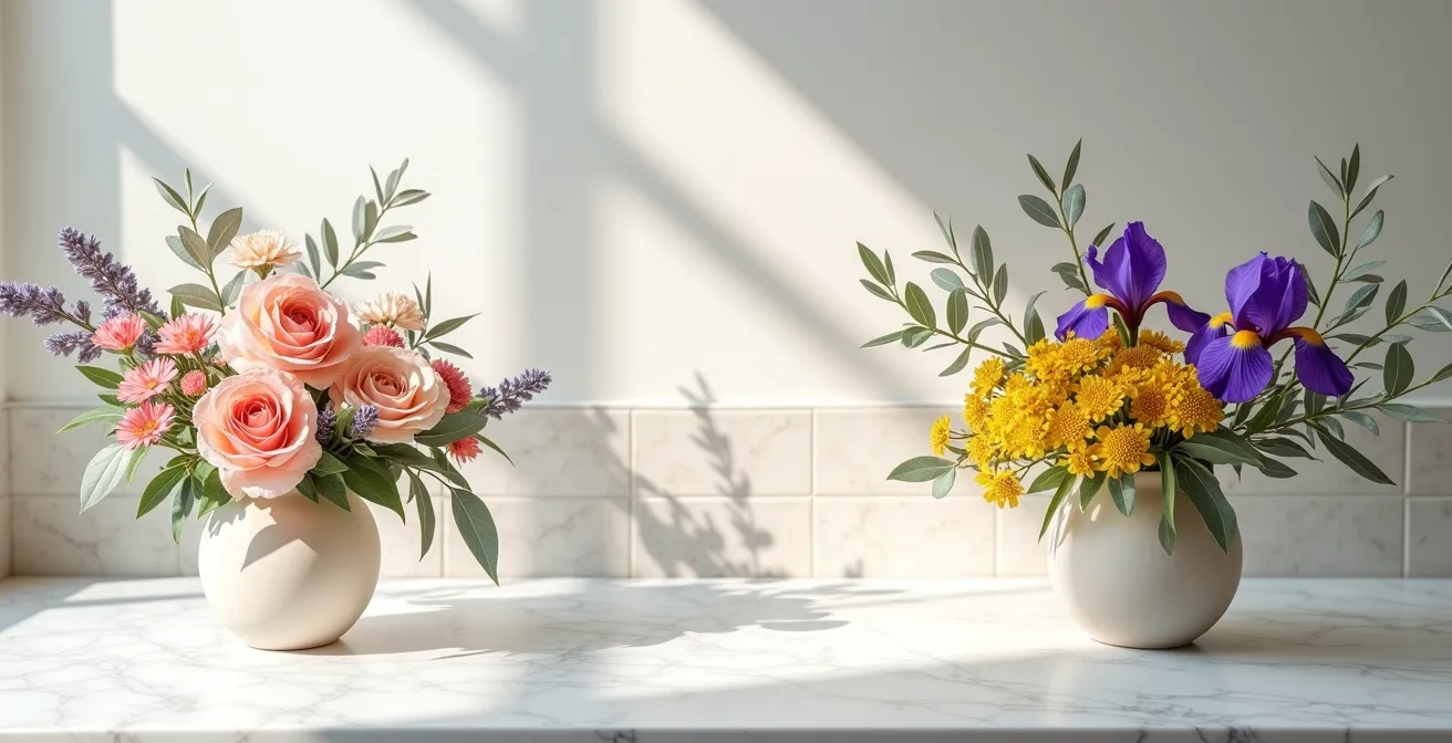 - Priorice la textura sobre el color: Elija orquídeas blancas, calas y camelias por su acabado reflectante sobre rosas de textura mate.