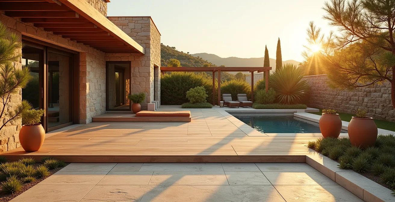 Como arquitecto técnico especializado en bioconstrucción, observo una tensión constante en el diseño de exteriores en España. La búsqueda de una estética impecable, a menudo inspirada en tendencias globales, choca frontalmente con la cruda realidad de nuestro clima: veranos tórridos, sequías prolongadas y lluvias torrenciales. La elección entre la calidez de una madera tropical o la robustez de una piedra local parece ser el centro del debate, pero esta es una visión superficial del problema.